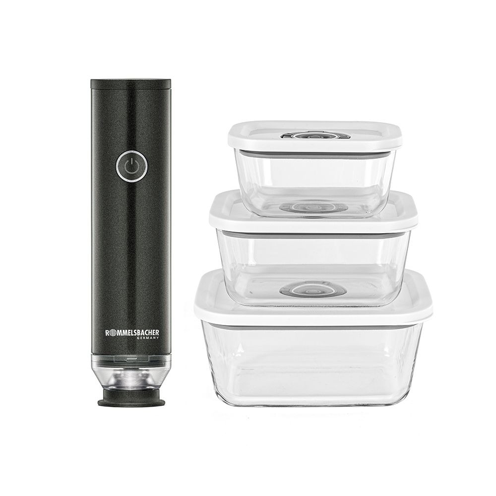 Rommelsbacher VAC 253/S – Hand Vacuum Sealer Starter Set with VAC 25 Handheld Vacuum, Lithium-Ion Battery, Glass Vacuum Containers, ZIP Bags, USB-C Cable
