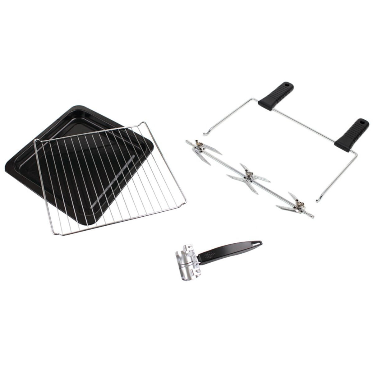- 1 x Rotisserie Spit met handvatten: Perfect voor het bereiden van knapperige en gelijkmatig gegaarde kip aan het spit.